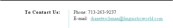 Increase your value at the office! This specially designed group course includes: · Individual aptitude assessment of each group member · Language skills improvement: written and spoken, terminology and phraseology · Professional Interpreting skills improvement: consecutive and simultaneous modes · Interpreting tools and resources · Translation tools and resources The course is designed to meet your specific needs and to enhance your performance. Contact Diane dianeteichman@linquisticworld.com for details today.